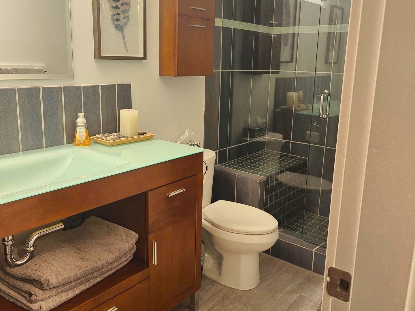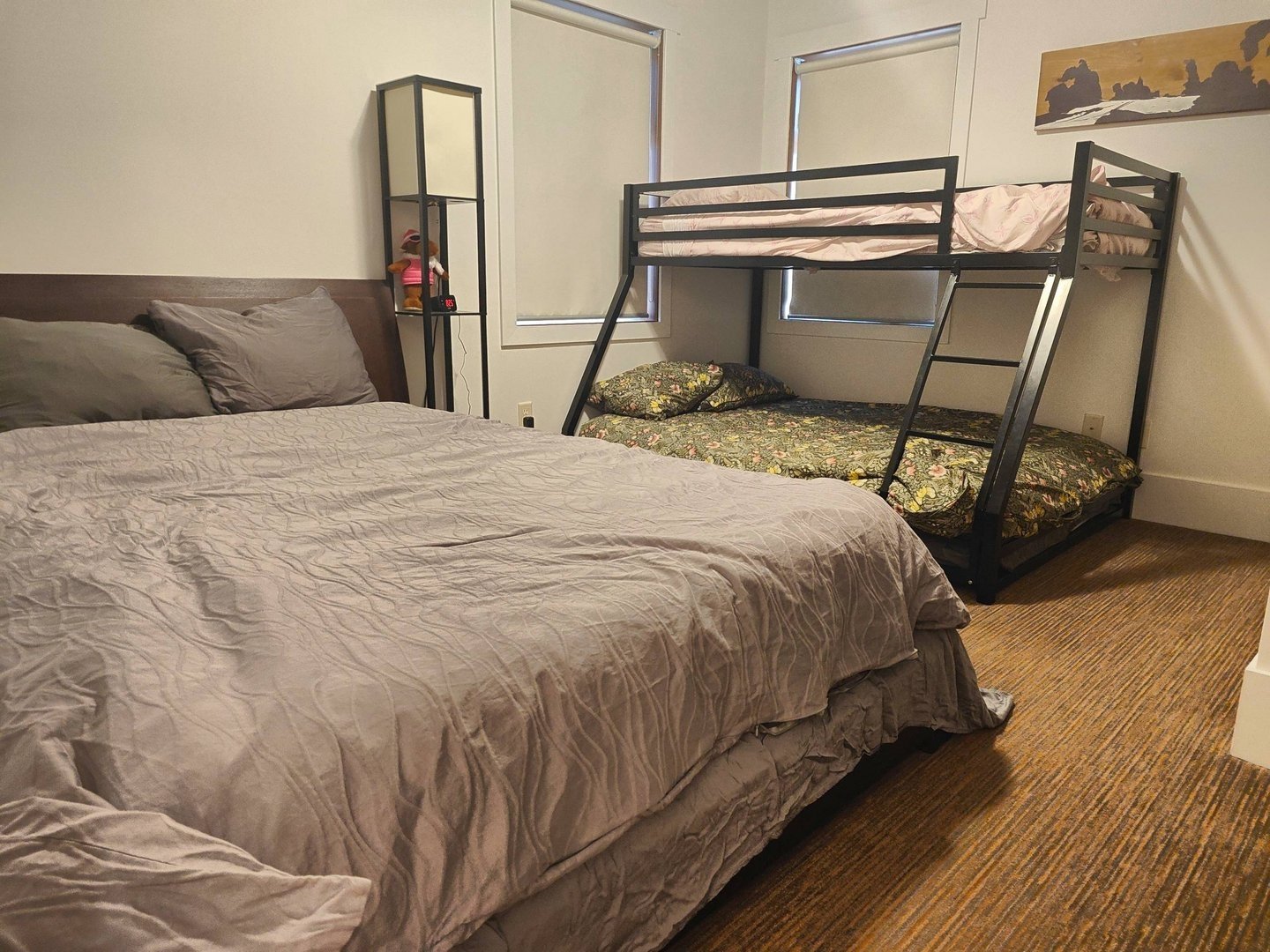 With two bedrooms, each furnished with a Queen bed, plus a bunk bed in the second bedroom, this home comfortably sleeps up to seven guests. The gourmet kitchen comes fully equipped for everything from quick breakfasts to hearty family feasts.