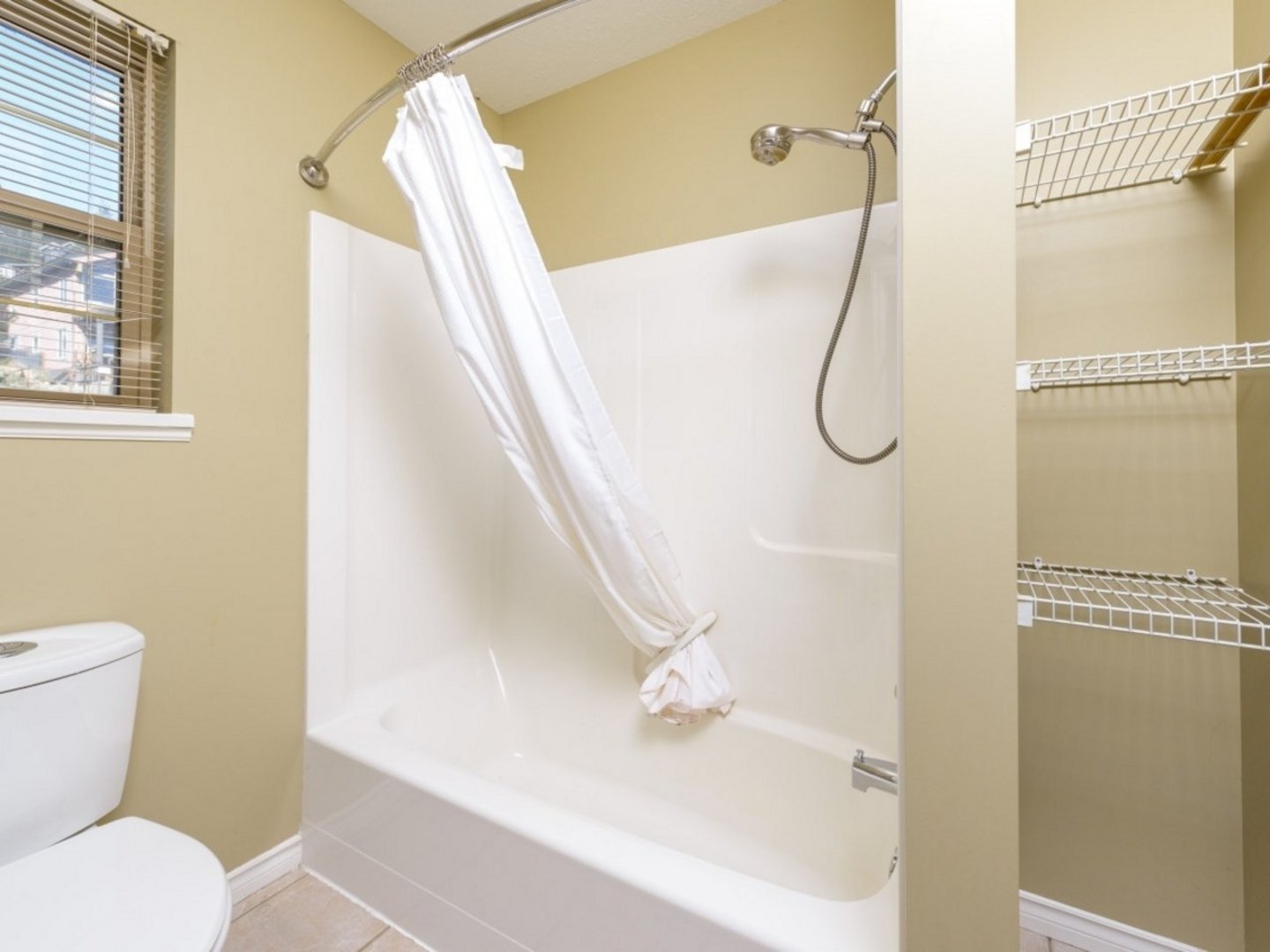 Two full bathrooms offer shower/bath combinations, stocked with towels, toiletries, and all the essentials for your stay.