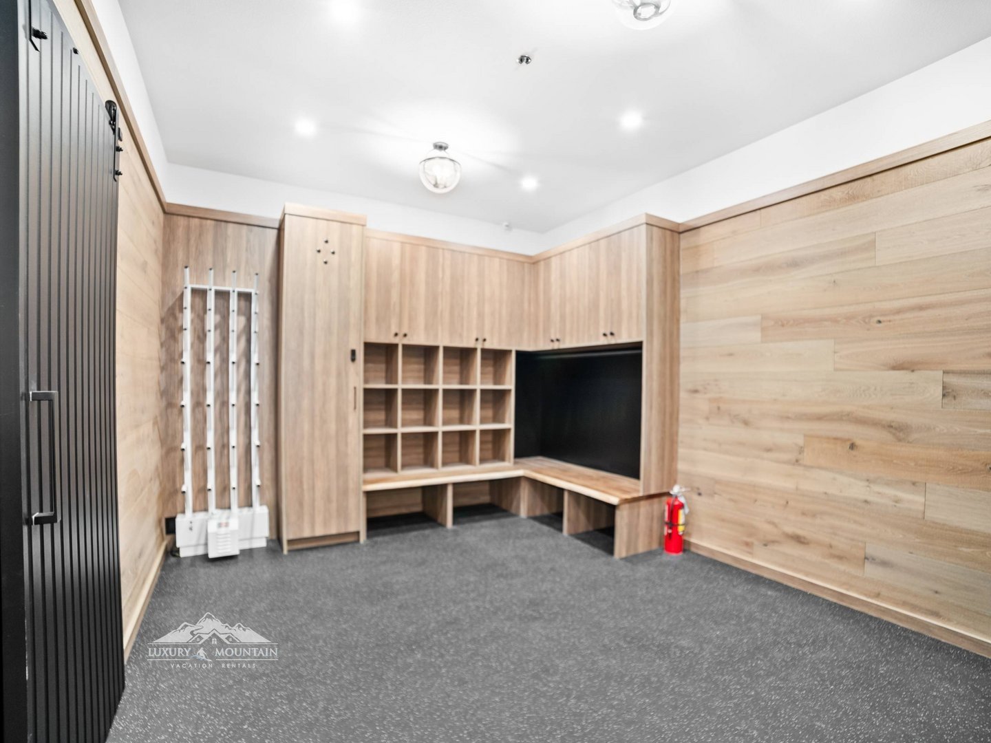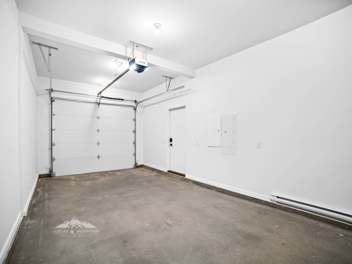 The heated garage includes a built-in boot room with wall-mounted boot and glove dryers, making it easy to gear up for another day on the slopes. Additional parking in front of the building offers added convenience for families or larger groups.