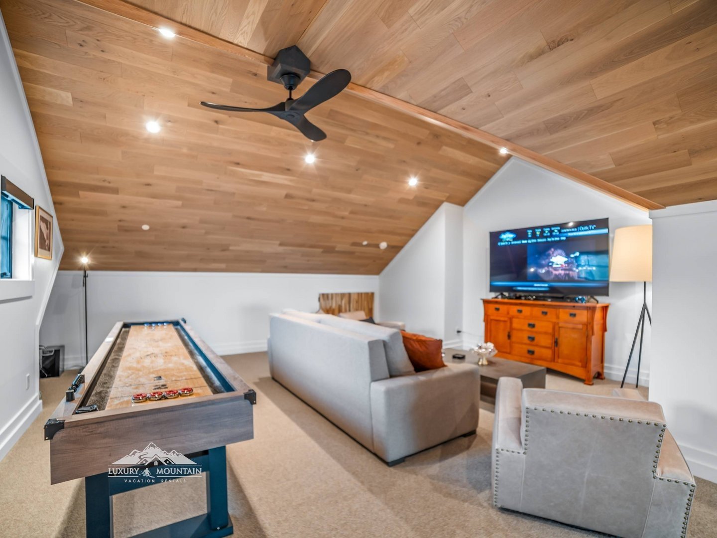 Guests will love Snowball Effect because it offers more than just a place to stay — it delivers an experience. The breathtaking floor-to-ceiling mountain views create an instant wow factor, while the open main floor makes it easy for everyone to gather and connect. Families appreciate the kid-friendly touches like the secret loft fort and custom bunk room, while adults enjoy the chef-inspired kitchen, wine cooler, and après-ski amenities like the hot tub and sauna. With true ski-in/ski-out convenience, heated floors throughout, and multiple entertainment spaces spread across four levels, this chalet is the perfect balance of luxury and comfort for groups who want it all.