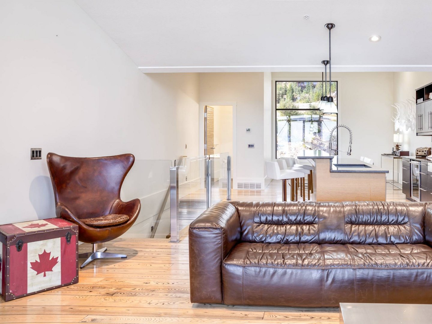 Spread over three thoughtfully planned levels, the chalet showcases an impressive top-floor living and entertaining space with soaring ceilings and floor-to-ceiling windows that flood the interior with natural light and breathtaking alpine views. A private deck extends off the main living area — ideal for morning coffee, après-ski drinks, or stargazing under crisp mountain skies.