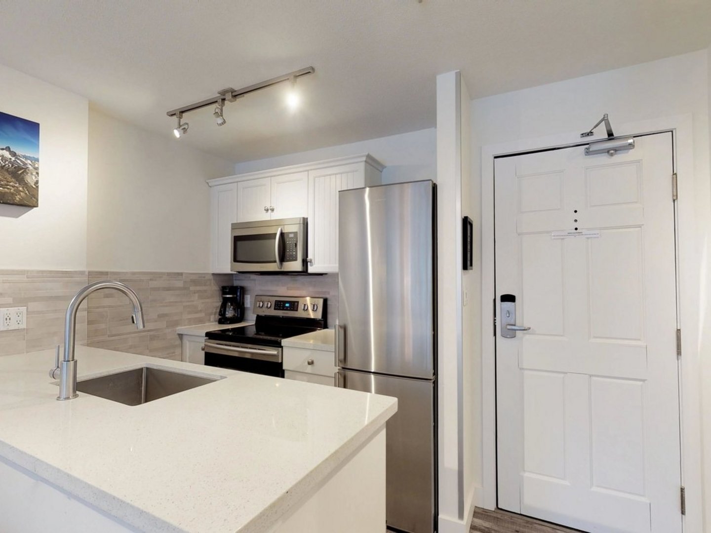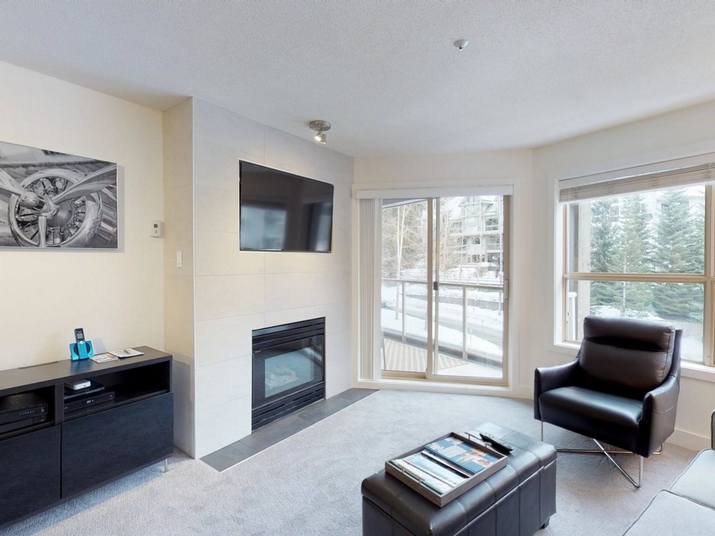 Welcome to your Whistler mountain retreat at The Aspens Lodge, a beautifully renovated third-floor, one-bedroom, one-bathroom condo located slope-side on Blackcomb Mountain. Updated, this cozy home features a warm living area with a gas fireplace and a private patio with propane BBQ offering splendid views of the lodge entrance and ski hill.