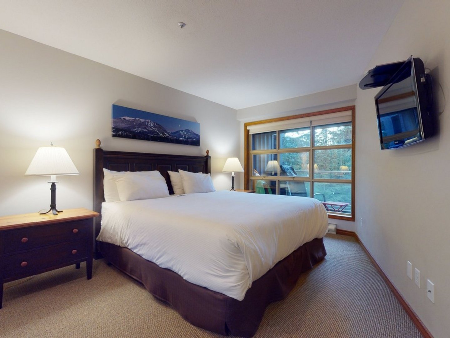 Perfect for couples or small families, the unit sleeps up to four guests and includes air conditioning in the living room, two flat screen TVs with cable, and a fully equipped kitchen with recently updated appliances. After a day on the slopes or exploring Whistler Village, unwind in the lodge’s heated outdoor pool or soak in one of three hot tubs. The Upper Village and Blackcomb Gondola are just a short 5-minute walk down the ski hill, with plenty of dining options nearby.