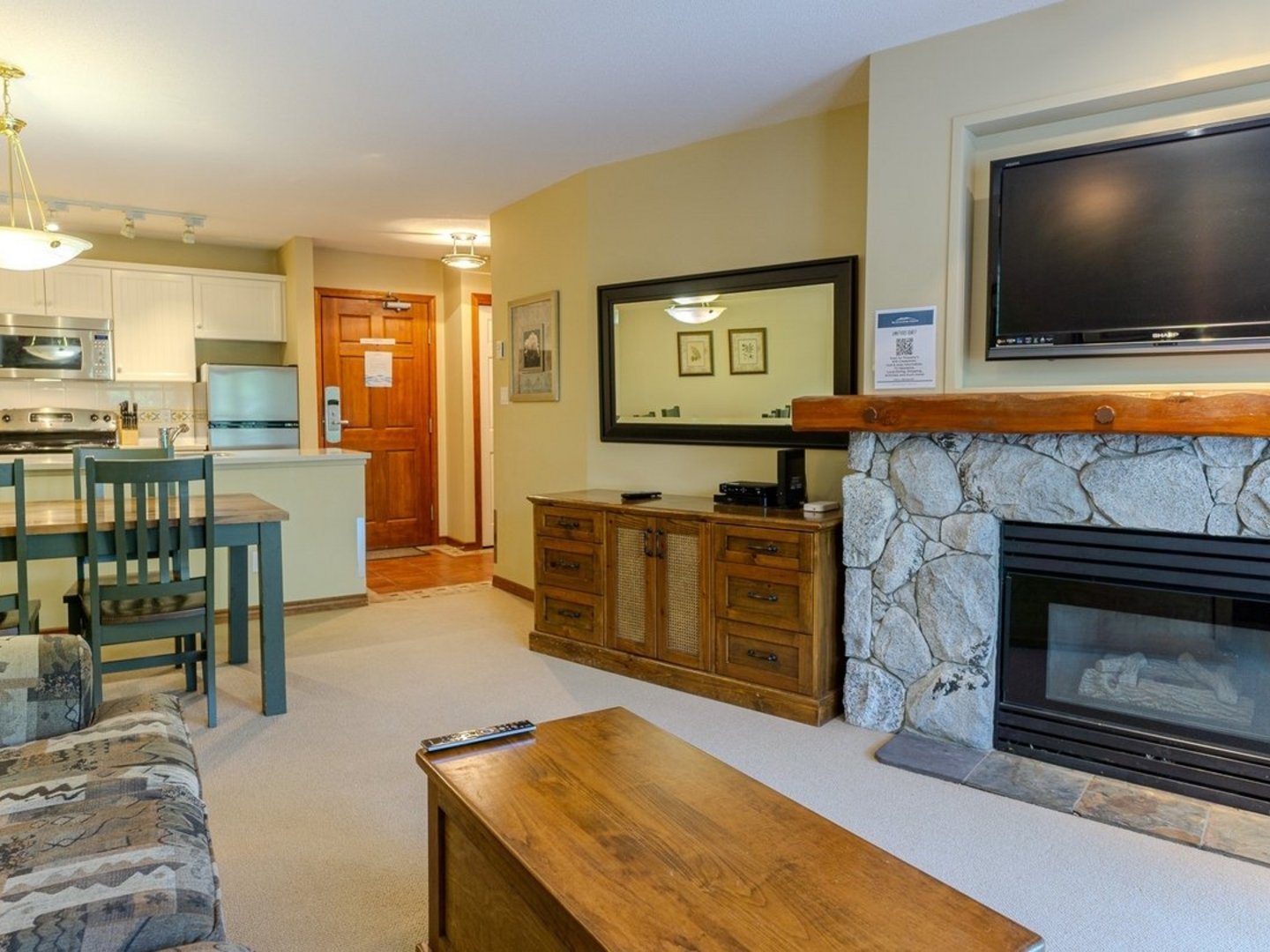 - Cozy living area with gas fireplace