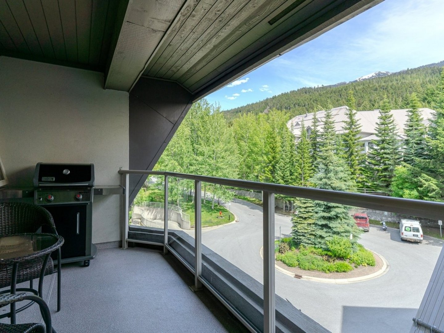 - Forest-facing patio with BBQ