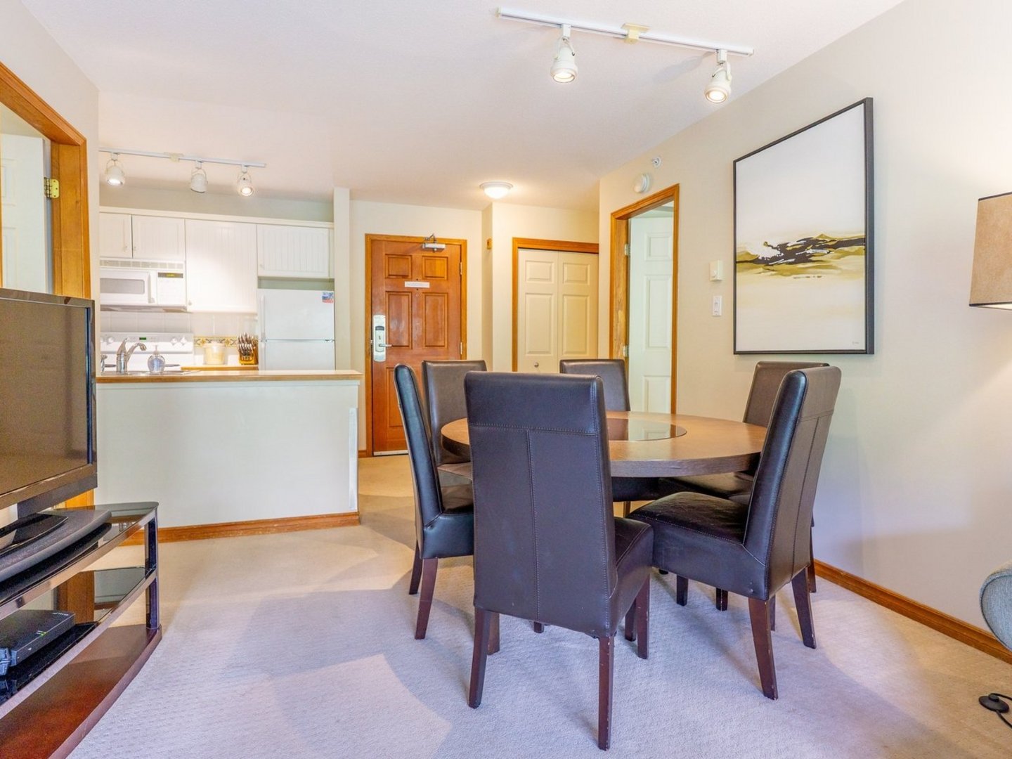 Perfect for families or small groups, the unit sleeps up to six guests and includes air conditioning in the master bedroom, two flat screen TVs with cable, and a fully equipped kitchen for easy dining in. After a day on the slopes or exploring Whistler Village, unwind in the lodge’s heated outdoor pool or soak in one of three hot tubs. The Upper Village and Blackcomb Gondola are just a short 5-minute walk down the ski hill, with a variety of restaurants and après-ski options nearby.