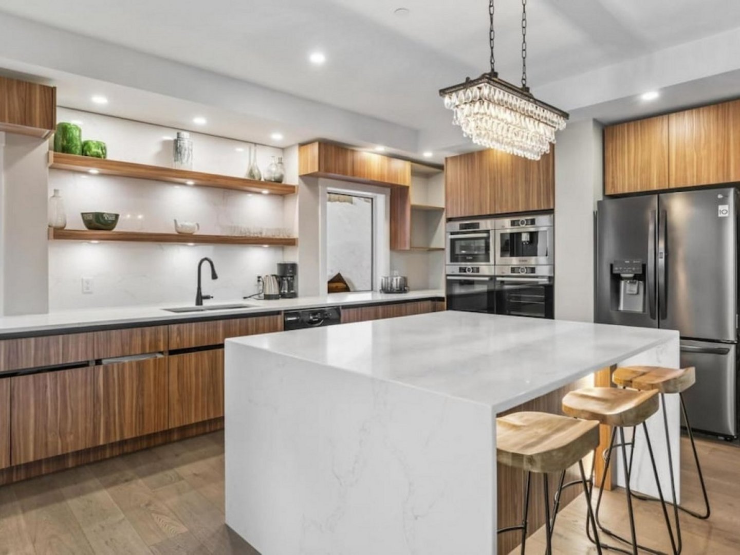 Inside, you’ll find premium finishes throughout—marble countertops, stainless steel appliances, custom wood/brick/tile work, leather recliners, and thoughtful touches that elevate your stay.