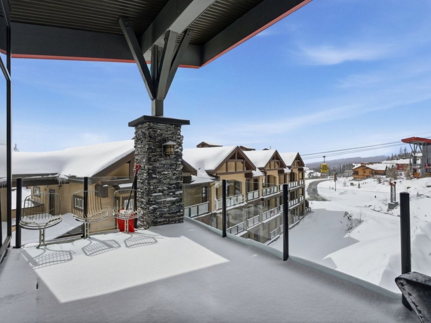 The ski run sits directly behind the property. Ski down to the Happy Valley gondola for access to the Village and all lifts.